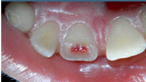 Det er harmløst, så længe barnet ikke klager over smerte, og så længe der ikke er kommet en tandbyld. Misfarvningen kan gå væk igen, men kan også vare ved indtil tanden tabes naturligt.